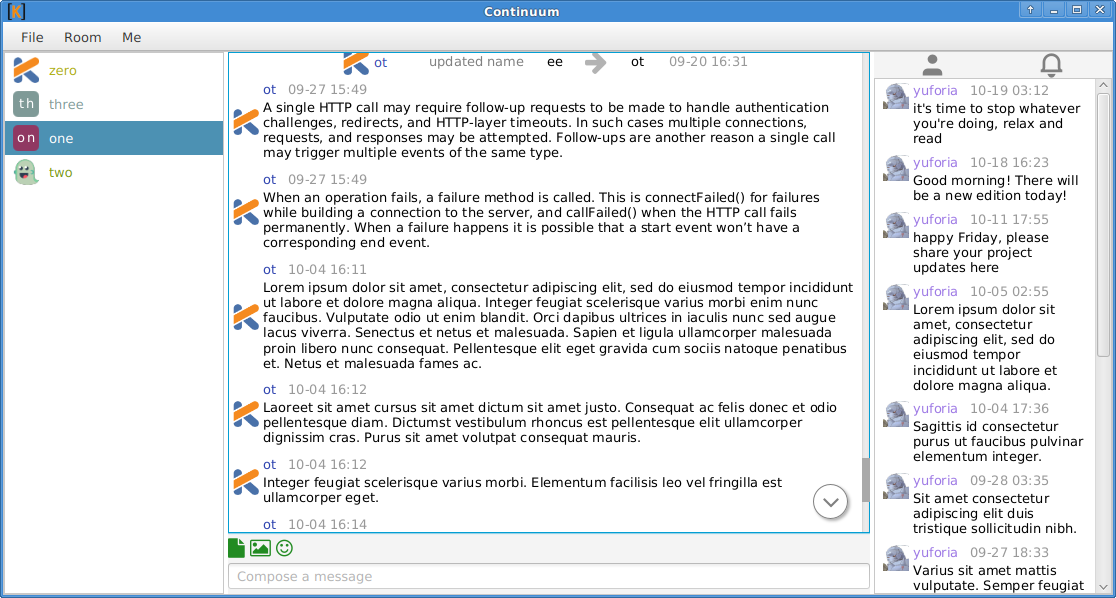 Continuum, desktop client in Kotlin, version 0.9.27: